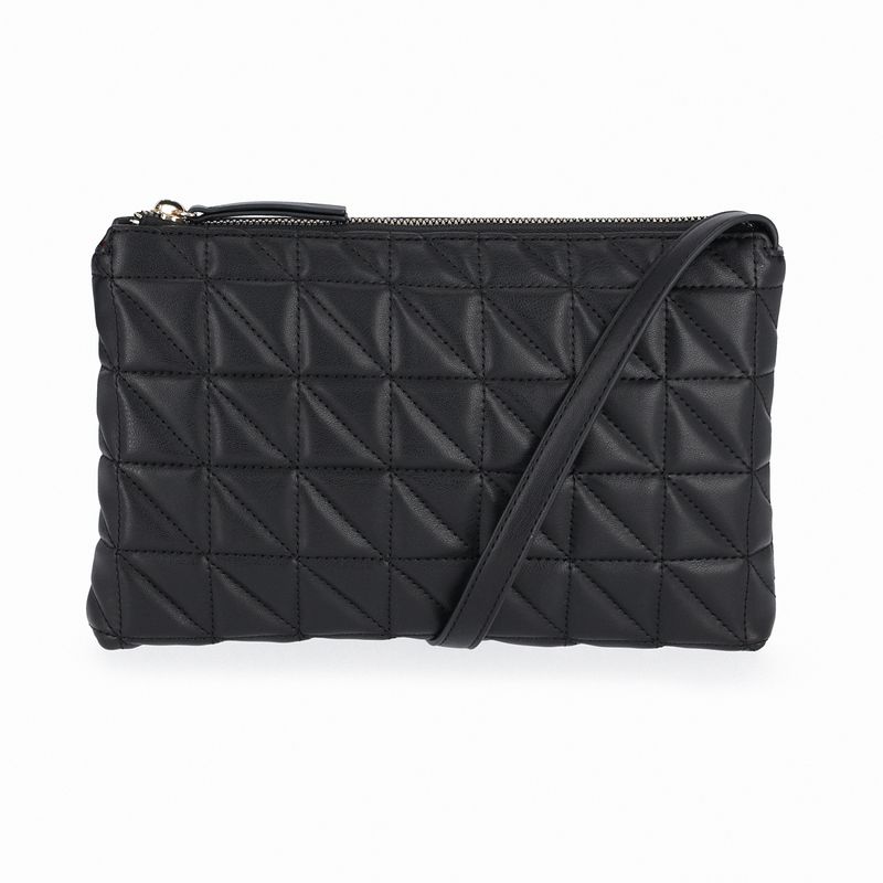Fechamento externo com zíper. Bolso interno com zíper. Alça longa ajustável.