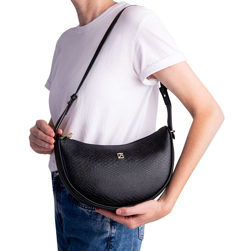 Estilosa e clássica. A Bolsa Joana Shoulder Média Preto é aquele detalhe que faz toda a diferença no seu look. A tendência preta é o clássico indispensável que eleva qualquer look com elegância atemporal e versatilidade total. Esse modelo ficará lindo com looks para o trabalho ou peças casuais. Seu novo acessório favorito está aqui. Garanta já a sua bolsa PICCADILLY!