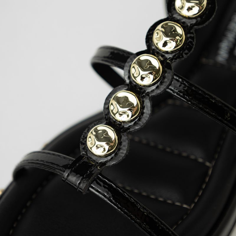 Moderna e cheia de personalidade, a rasteirinha com tiras finas foi feita para quem ama unir estilo e conforto no dia a dia. O modelo traz aplicações douradas ao longo do peito do pé e em todo o solado, criando um visual sofisticado e com toque fashion que transforma qualquer produção básica em um look marcante. Versátil e elegante, é a rasteirinha perfeita para acompanhar desde looks casuais até combinações mais urbanas com muito charme.