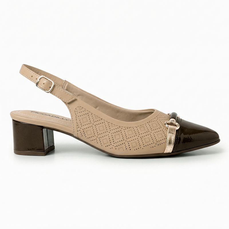 Prático e essencial. Conquiste o dia com o Slingback Taci Salto Médio ao seu lado. O calçado é super leve e ainda possui acabamento superconforto, forro superfofinho, palmilha super-estabilidade e solado superaderente tornando-o indispensável para quem precisa ficar horas de pé no trabalho. O calce fácil traz liberdade no dia a dia, não sendo preciso usar as mãos para colocá-lo. Um calçado que complementa tanto looks urbanos quanto mais românticos. Seu novo calçado favorito está aqui. Garanta já o seu PICCADILLY!
